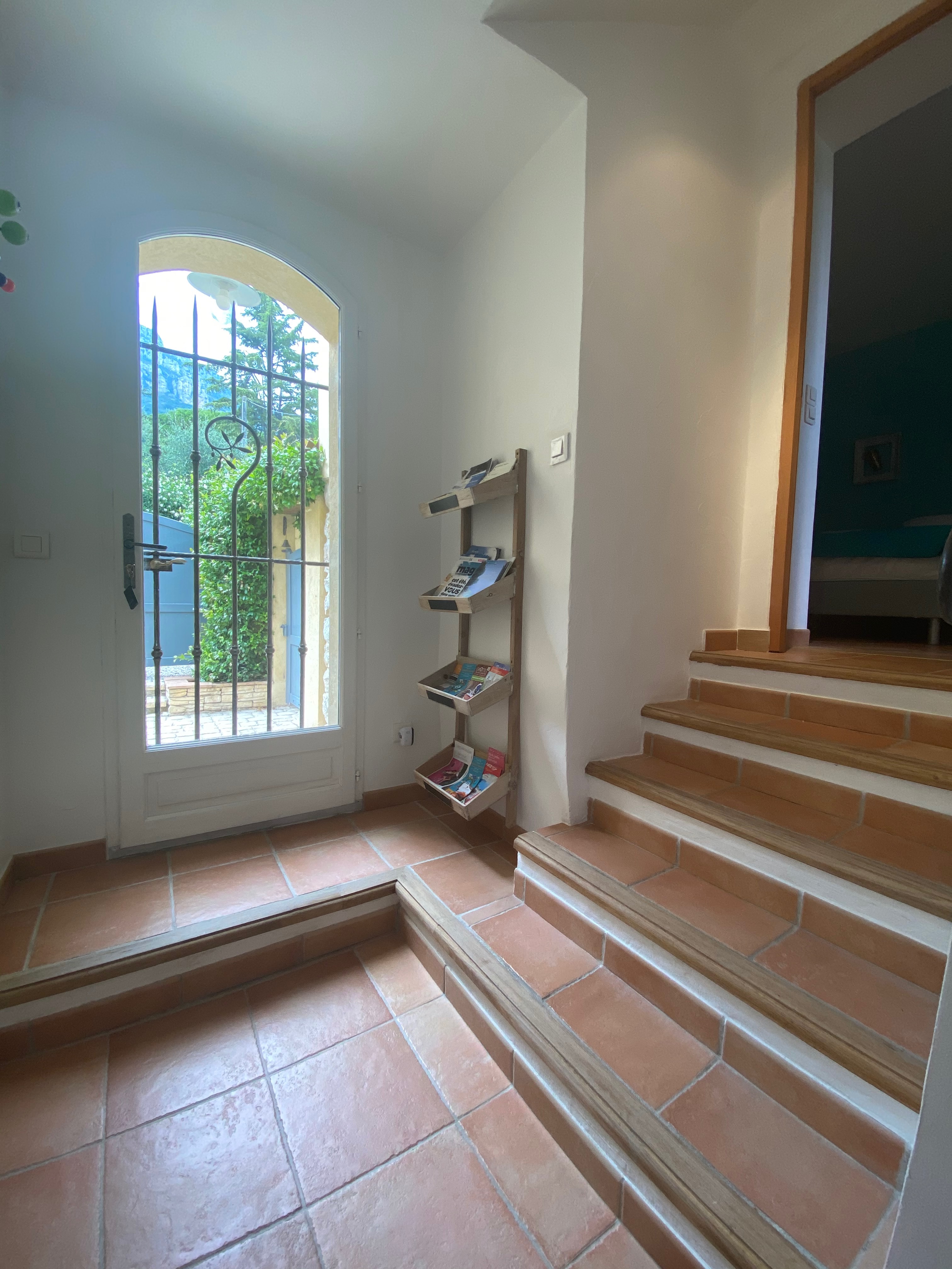 La pièce à vivre s’ouvre sur la terrasse de 15m2 et sur le jardin privatif de 44m2 entièrement clos; un portillon permet d’accéder à la piscine (accès réglementé).